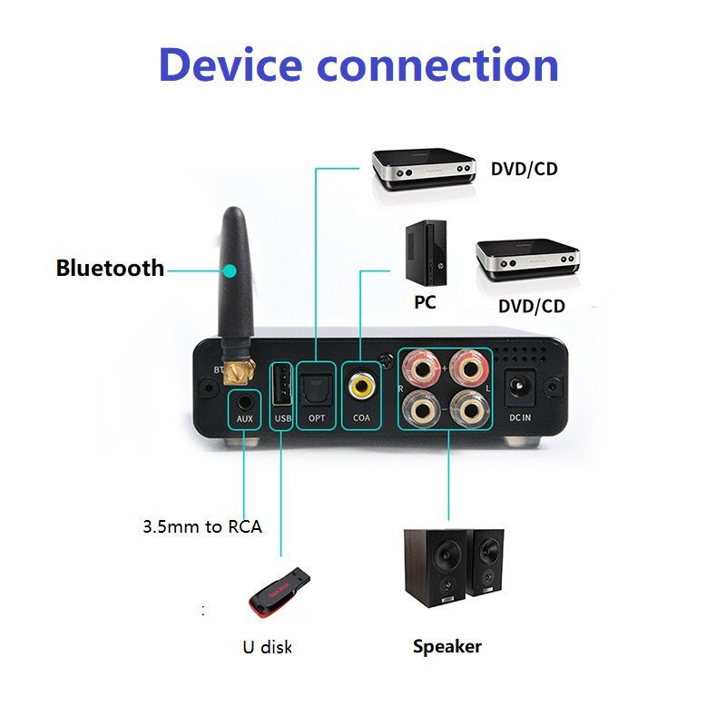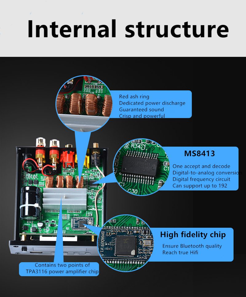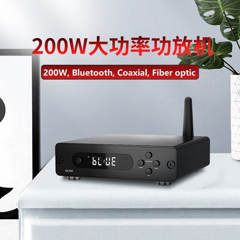 Amplificateur numérique Bluetooth 5.0 amplificateur de puissance audio stéréo 100w + 100w prend en charge l’entrée AUX U disque Coaxial optique fibe APP 200W