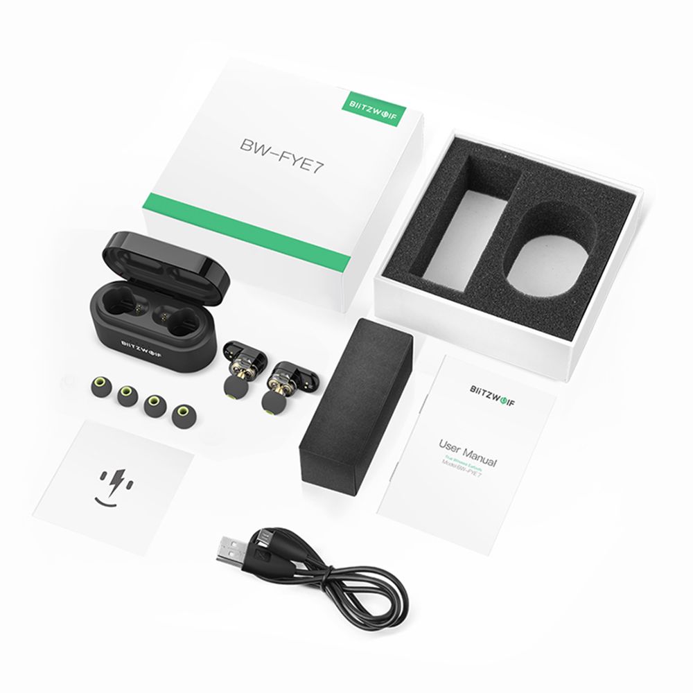 [Double pilote dynamique] Blitzwolf BW FYE7 TWS Bluetooth 5.0 Intra-auriculaire Sport Running Écouteurs sans fil Bass Stéréo Appel bilatéral Écouteurs Hifi Music True Écouteurs sans fil True Battery (Black)