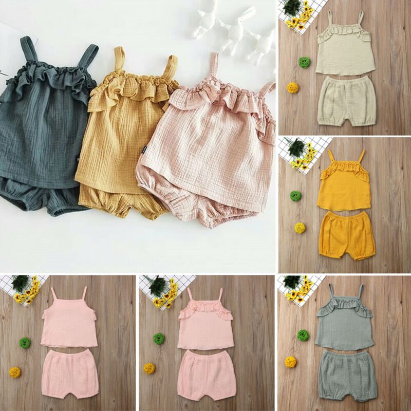 Ensembles de vêtements d’été pour enfants filles | Tenue sans manches, haut + short, tenue en coton, nouveau Style, pour bébés filles