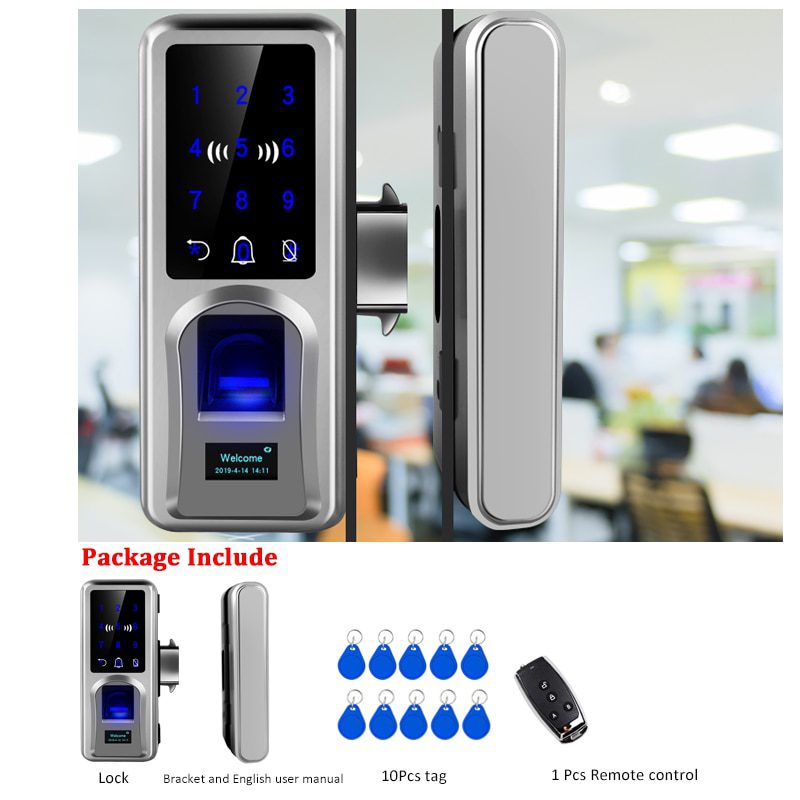 High Security Lock Sliding Glass Door Lock Keyless with Remote Control Office Entrance Glass Long Battery Life Span