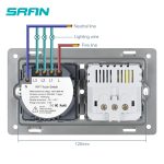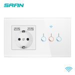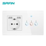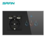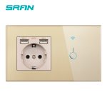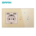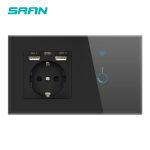 SRAN EU 2 cadre interrupteur sans fil et prise avec panneau en verre cristal usb 146mm * 86mm 16A prise murale avec interrupteur intelligent 1/2/3gang